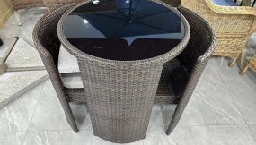 The Algen Patio Set is a modern and practical outdoor furniture option. It is crafted with synthetic rattan material, which is durable and easy to maintain. The water-resistant cushion provides a comfortable seating experience, while the tempered glass table top adds a touch of elegance to the set. Moreover, its space-saving design makes it a perfect choice for smaller patios or balconies.