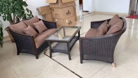 - Synthetic Rattan Craftsmanship: The sofa set is skillfully woven with high-quality synthetic rattan, ensuring durability and resistance to environmental elements.