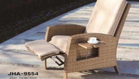 Steamer Lazy Chair, JHA-9554 Home » Products » Steamer Lazy Chair, JHA-9554 Product Descriptions :Steamer Lazy Chair, the rustic look goldfish colour of the synthetic rattan push back and in build side table and comfortable cushion,Take Me Now… Related products Custom Made Tables, RS-103 Read more Hanging Planter, JHA-TB10 Read more Out of Stock Modern Patio Set,JHA-165 Read more Sectional Sofas , JHA-145 Read more